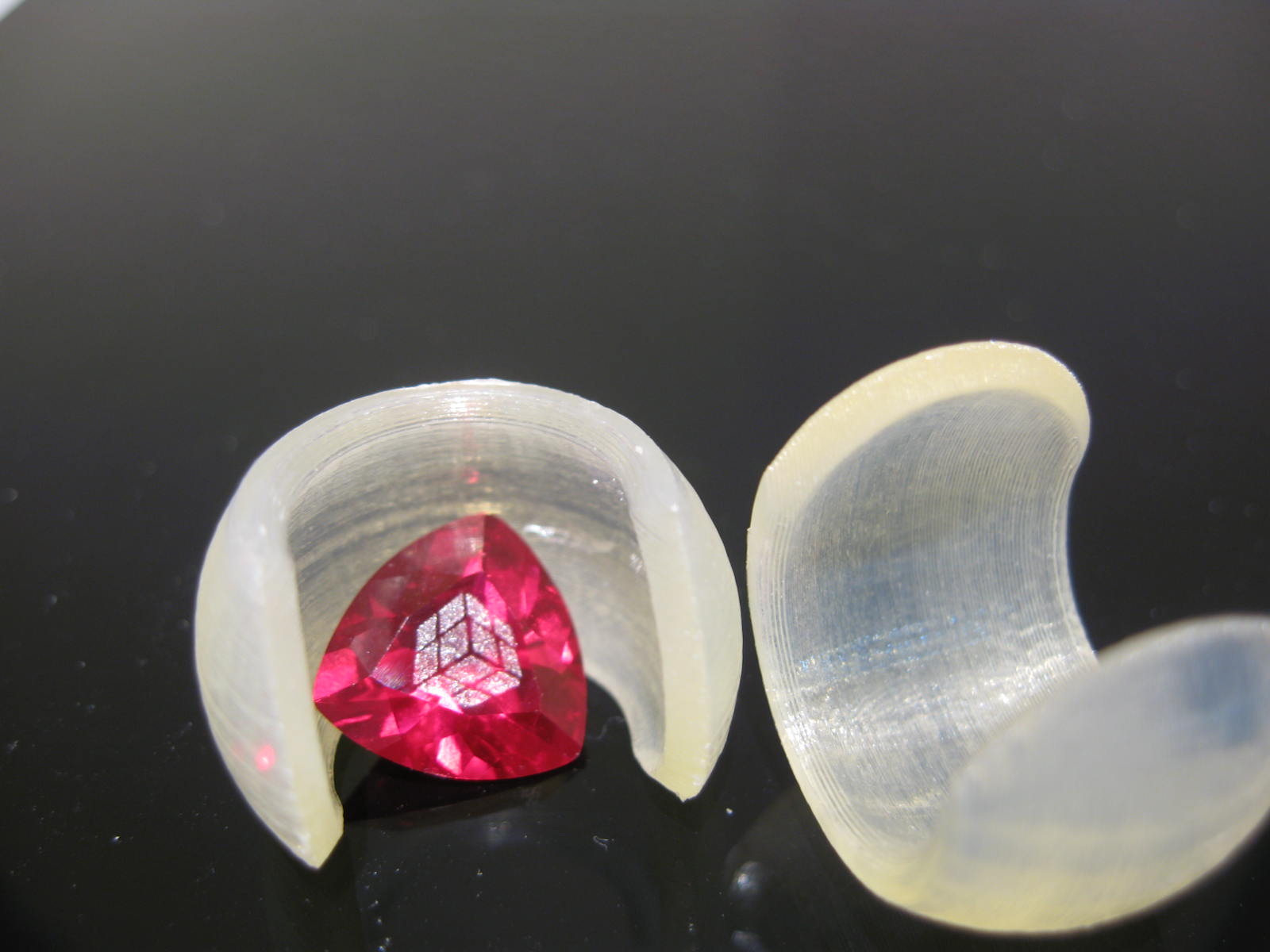 It can also be used as a container because the two pieces snap together. It avoids the 'flat' spots often associated with 3D printed spheres because the exterior surfaces are made with sidewalls only, no upfacing or downfacing surfaces.