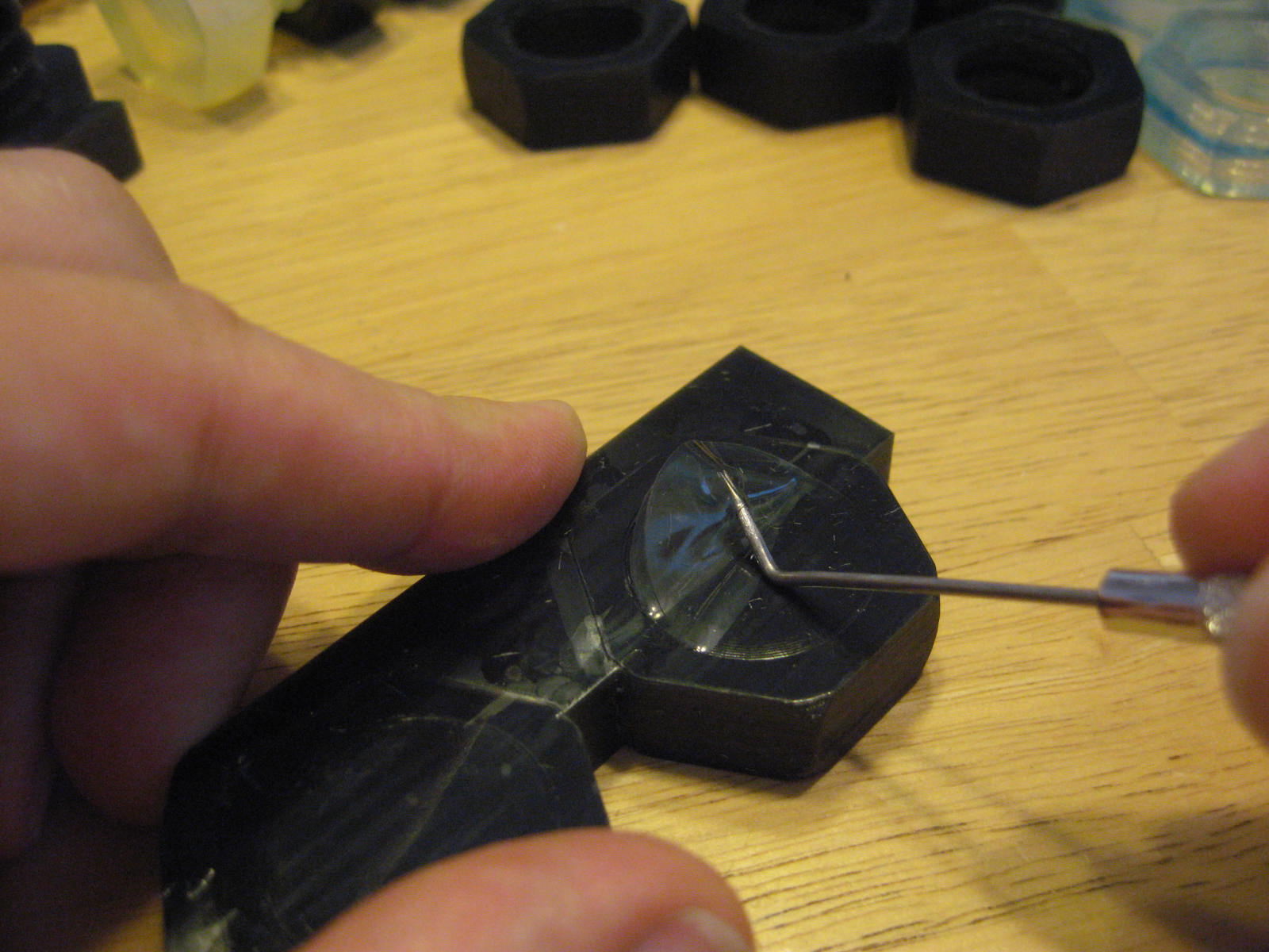 Solido provided strong forceps to help peel away material. Those forceps are great for most models, but they're awkward for cleaning material from holes like these so I bought a set of hobby probes.